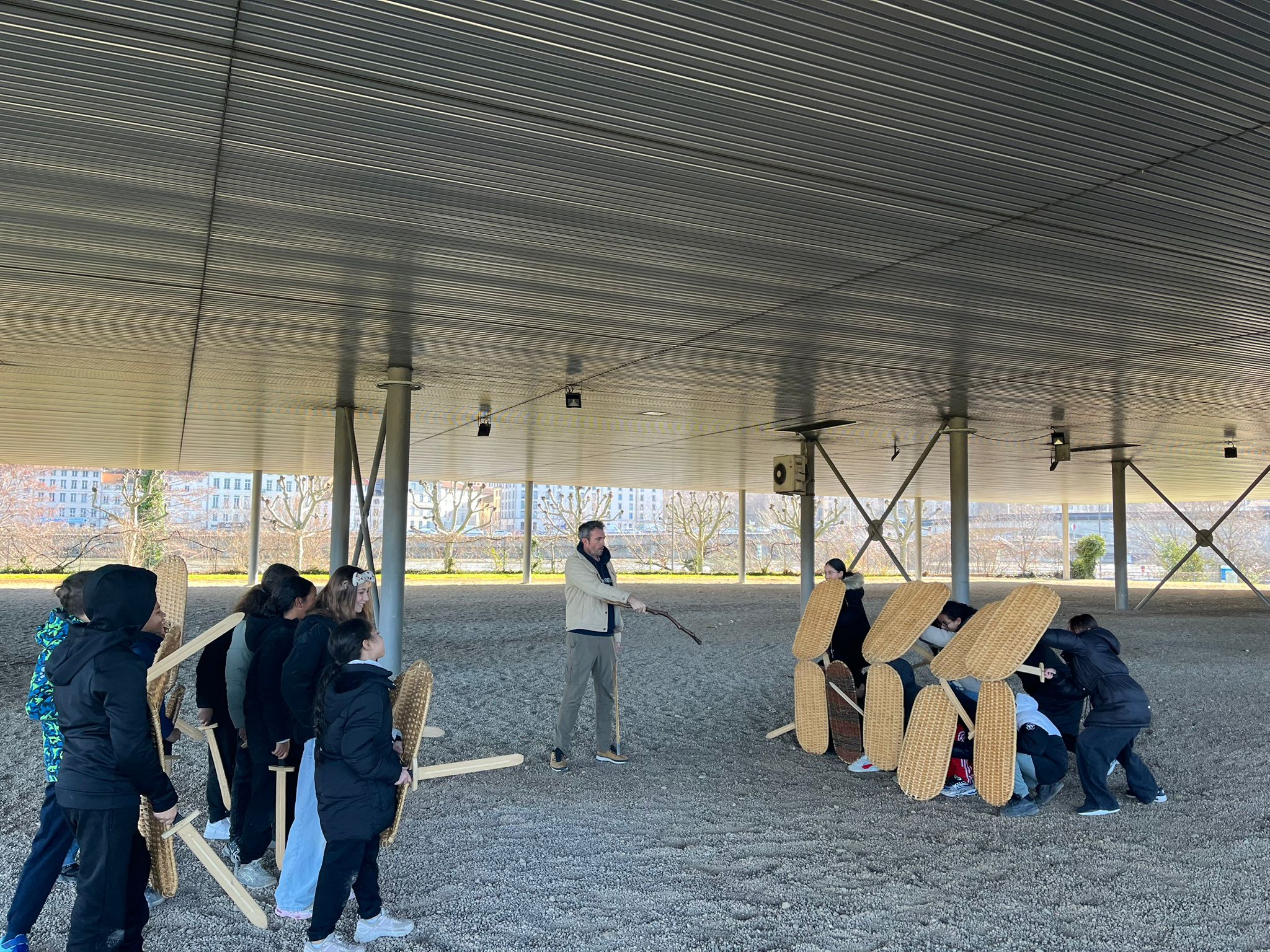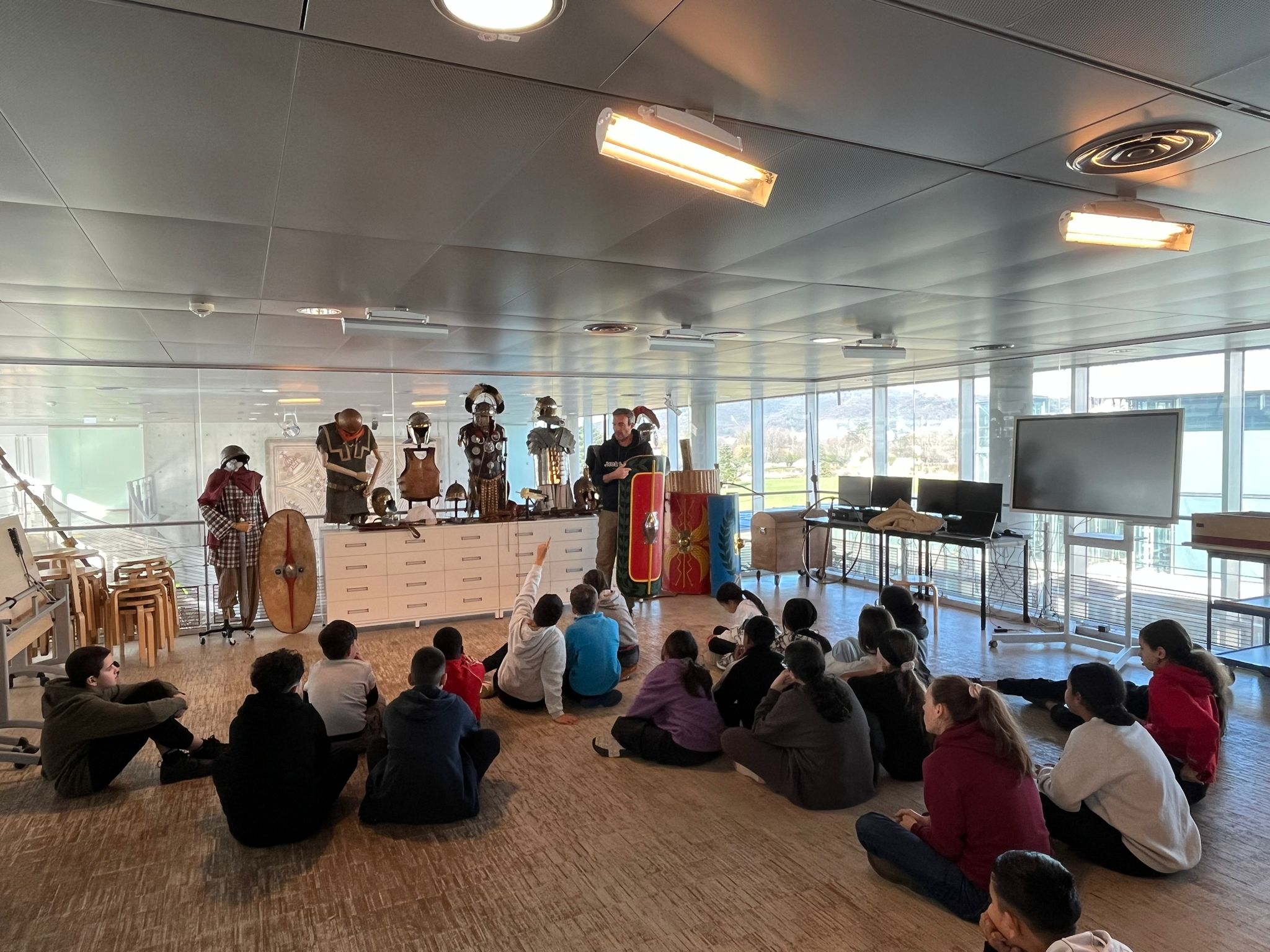 Les élèves ont participé à un atelier au musée archéologique de Saint-Romain-en-Gal. Ils et elles ont pu se mettre dans la peau des légionnaires et réaliser des formations de défense et d'attaque sous la supervision d'un archéologue du musée.